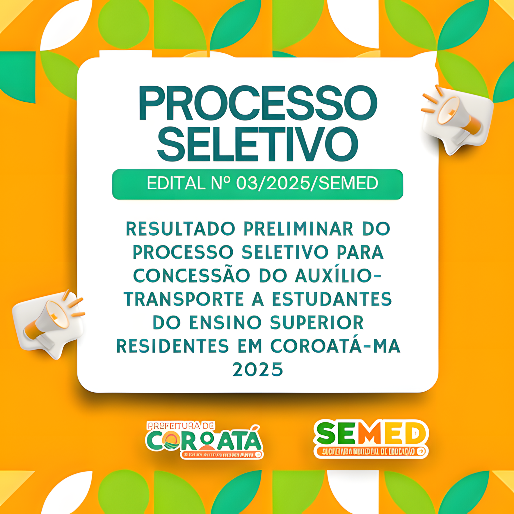 A Prefeitura Municipal Coroatá, por meio da Secretaria de Educação, tem a satisfação de anunciar os candidatos aprovados no processo seletivo do Auxílio Transporte Universitário. A lista oficial dos beneficiários já está disponível e pode ser conferida no final desta matéria.